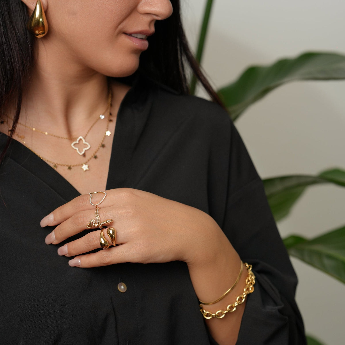 Aggiungi nuove sfumature al tuo look con un mix stravagante di gioielli.